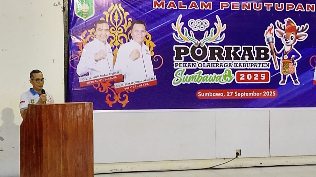 Sumbawa, SamantaNews.com – Bupati Sumbawa, Ir. H. Syarafuddin Jarot, MP, secara resmi menutup rangkaian Pekan Olahraga Kabupaten (Porkab) Sumbawa 2025 di Padepokan Beladiri, Komplek GOR Mampis Rungan, Brang Biji, Sumbawa Besar, Sabtu (27/9/2025).