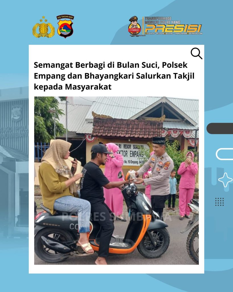 Kapolres Sumbawa AKBP Marieta Dwi Ardhini, S.H.,S.I.K, melalui Kapolsek Empang AKP Nakmin menyampaikan bahwa kegiatan ini merupakan bentuk syukur sekaligus upaya Polri untuk mempererat silaturahmi dengan masyarakat di bulan yang penuh berkah.