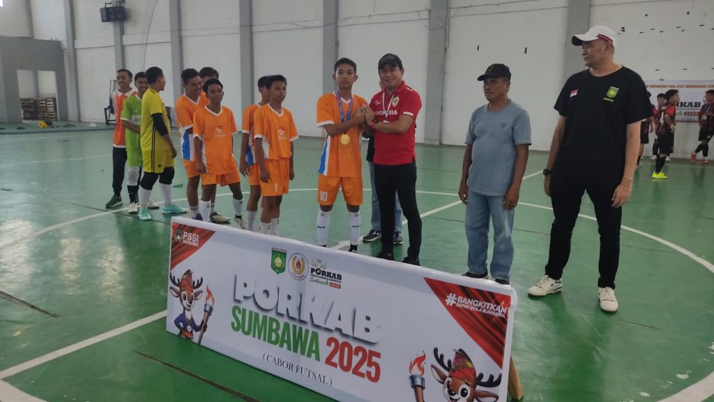 Sumbawa – SamantaNews – Cabang olahraga futsal pada Pekan Olahraga Kabupaten (Porkab) Sumbawa 2025 resmi ditutup Ketua KONI Sumbawa, Abdul Rafiq SH, M.Si, di GOR Mampis Rungan, Jumat (19/9/2025). Partai final mempertemukan Kecamatan Unter Iwes melawan Kecamatan Moyo Utara. Dalam laga sengit tersebut, Unter Iwes berhasil meraih kemenangan dan menyabet medali emas.